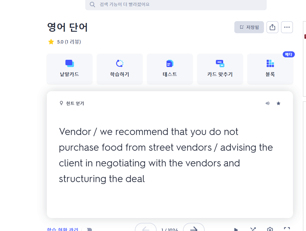 사이트를 이용한다. 여러 사람들이 올린 단어, 회화 등을 카드 퀴즈처럼 공부할 수 있다.